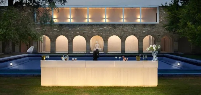 Banco bar in legno, colore verde salvia cm 186 x 80 x h 90