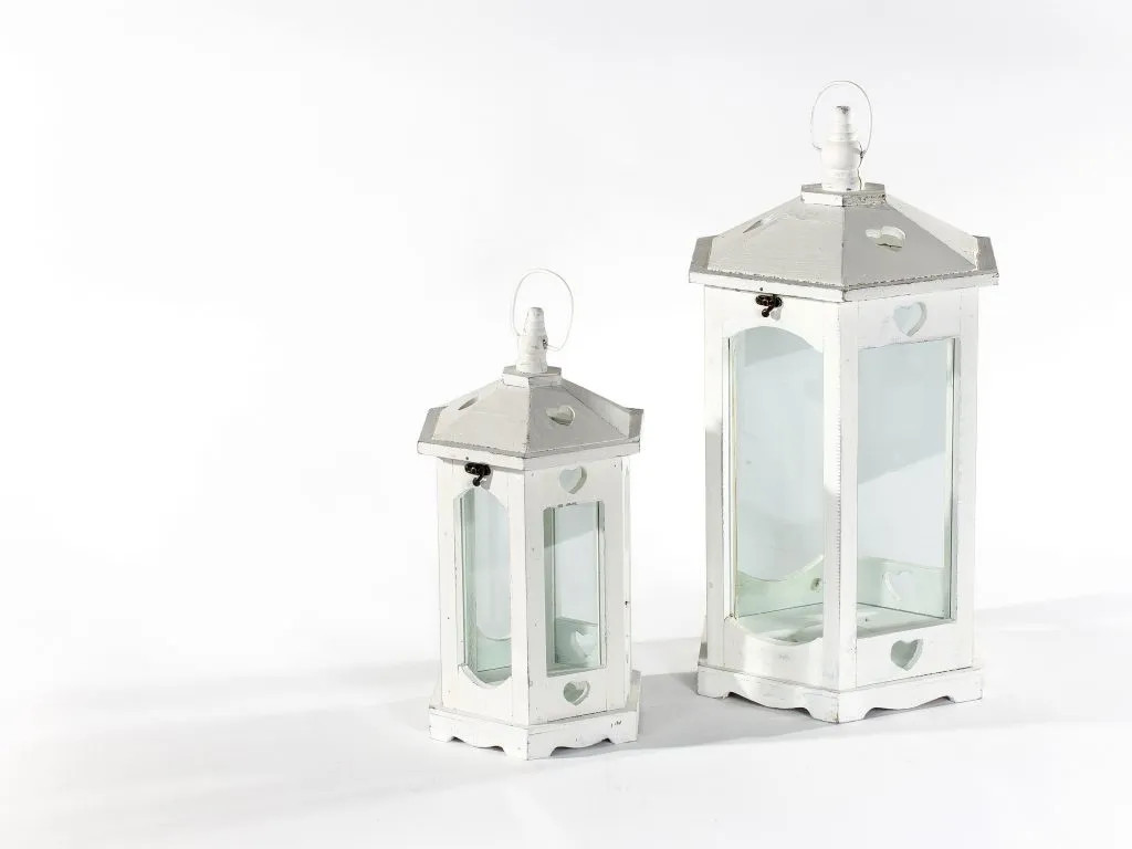 Noleggio set da 2 lanterne legno bianche